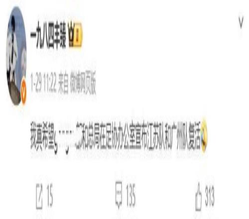 高薪+高奖金,以及极其严苛的队规,让当时的广州恒大球员和教练团队没必要为了一点小钱而铤而走险。没有从业人员涉事,更让人惋惜广州队的解散。对此,记者丰臻在个人社交平台上呼吁(下图),我真希望足协宣布江苏队和广州队复活。